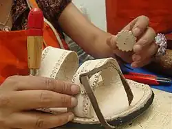 Traditional huarache designs vary greatly, but are always very simple. Originally made of all-leather, later designs included woven string soles and occasionally thin wooden soles. Subsequently, more elaborate upper designs were created by saddlers and leather workers.