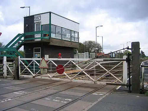 Hubberts Bridge railway station serves the village of Hubberts Bridge in Lincolnshire, England. It is located on the Sleaford to Boston section of the Poacher line. Opened along with the line by the Boston, Sleaford and Midland Counties Railway in 1859,[1] The eastbound platform is longer than the westbound platform: it can accommodate a three-car train, whereas the westbound platform can only accommodate a two-car train.[2]
