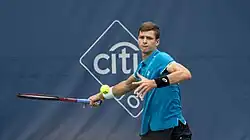 Following his Wimbledon run, Hurkacz attended the 2020 Summer Olympics and entered as the seventh seed. He defeated Luke Saville in the first round before falling in a stunning defeat to Liam Broady in a second round three-setter.[37] For the year's US Open Series, Hurkacz embarked on his first tournament of the North American summer swing at the Canadian Open in Toronto, where the seventh seed defeated Nikoloz Basilashvili to reach the quarterfinals before he lost to top seed Daniil Medvedev in a tight three-set match involving two tiebreaks. The following week, ninth-seeded Hurkacz took on the Cincinnati Masters and defeated former world No. 1 Andy Murray in straight sets before losing to Pablo Carreño Busta in the third round in another hard-fought match with two tiebreak sets. The loss ended Hurkacz's 12-match win streak in the United States following his success at Delray Beach and Miami earlier in the year.[38] In New York, Hurkacz embarked on the US Open as the 10th seed. He defeated Egor Gerasimov in the first round in straight sets before he was ousted by Andreas Seppi in a five-set second round match with a final set tiebreak.[39]