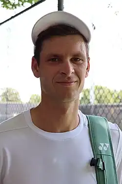 Hubert Hurkacz (Polish pronunciation: [ˈxubɛrt ˈxurkatʂ]; born 11 February 1997)[5] is a Polish professional tennis player. He has been ranked as high as world No. 6 in singles by the ATP, making him the highest-ranked Polish man in singles history. He has won eight ATP Tour singles titles, including two Masters 1000 titles at the 2021 Miami Open and the 2023 Shanghai Masters, becoming the first Pole to win an ATP Masters 1000 title. Hurkacz also has a career-high ranking of world No. 30 in doubles, which he attained in June 2022.