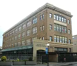 The school's main campus is located in Jersey City, with several institutions tapered throughout Journal Square and nearby Bergen Square.[4] It is accessible via the PATH rapid-transit railroad system[5] and bus service at the Journal Square Transportation Center. Located in the northern part of the county, The North Hudson Higher Education Center is a seven-story facility next to the Bergenline Avenue (HBLR station) at Kennedy Boulevard and 48th Street in Union City.[6] HCCC also offers off-campus classes in Bayonne, Hoboken, Kearny,[7] with some held in public buildings such as high schools.
