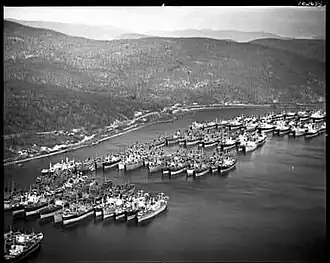 The Hudson River Reserve Fleet, formally the Hudson River National Defense Reserve Fleet and popularly the Mothball Fleet, was established by act of Congress in 1946 as a component of the National Defense Reserve Fleet. It was first located off Tarrytown, New York, on the Hudson River, one of eight anchorages in the United States to provide a sizable reserve of merchant ships to support any military need arising.[2]