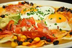 Main ingredientsTortillas, eggs, salsa, refried beans, avocado or guacamole