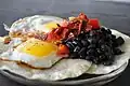 Huevos rancheros (Spanish pronunciation: [ˈweβos ranˈtʃeɾos], 'ranch-style eggs') is a breakfast egg dish served in the style of the traditional large mid-morning fare on rural Mexican farms.[1][2]