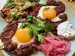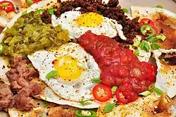 Similar dishes are huevos motuleños of Yucatan[14] and New Mexican enchiladas montadas.[15]