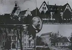 Because of the rapid growth of Hufen and Amalienau in turn of the century Königsberg, a new school was needed for the growing population.[1] The school opened on 1 May 1905[2] in a leased building on Hermann-Allee near the Tiergarten.[3] It was originally known as the Königliches (royal) Hufengymnasium, as Königsberg was part of the Kingdom of Prussia at that time.[2] Its first director was Otto Portzehl (1860-1945). In 1907 it became a Reformgymnasium, with an emphasis on learning foreign languages other than Latin. Concurrently, it received a new director, Harry Brettschneider (1854-1934), who stayed until 1921 and was praised for his methods of teaching history.[4]