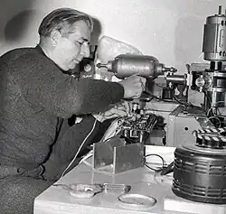 Between 1955 and his retirement from the NRC in 1973, Le Caine produced at least fifteen electroacoustic compositions in order to demonstrate the capabilities of his new devices. He also created a score of new devices and also presented his ideas and inventions to learned bodies and the general public. But while Le Caine did get excellent responses from both the learned bodies and the public, he did not get a satisfactory response from industry. Fortunately, a few people did eventually come into Le Caine's life to make him feel his efforts were of some value. One of these people was Israeli composer Josef Tal. In the summer of 1958, Tal had travelled to Ottawa under a UNESCO grant to visit major electronic music studios. Tal grew very excited about the instruments that Le Caine had built, but he did not realize what this meant to Le Caine until the following day when Le Caine, Tal, and several technicians were having lunch in a small restaurant. Tal noticed that not only had Le Caine been rather silent on this day, but on close inspection at the table, Le Caine had tears running down his cheeks and falling silently into his soup. When an opportunity arose, Tal delicately asked one of the technicians about this and was told that Le Caine had felt no composer in Canada had a use for his instruments and that Tal was the first composer who had shown any interest in his work.[1]