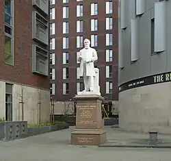 Then as part of the planning stipulations for the development of student apartments on Hope Street an agreement between the Nordic Construction (the developers) and Liverpool City Council was made to restore the statue and erect it on Hope street at the entrance to the apartments and opposite the Philharmonic pub.
