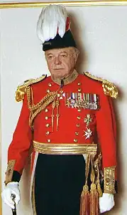 He entered the Yeomen of the Guard[9] as exon in 1964[10] and became its ensign in 1970.[11] Brassey was promoted to adjutant and clerk of the cheque the year thereafter[12] and finally to lieutenant in 1979.[13] Following his retirement in 1985, he was made as a Knight Commander of the Royal Victorian Order.[2]