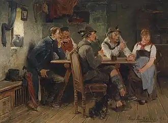 Kauffmann is known mainly for genre paintings, often set in taverns.[2] His paintings are usually small in scale and painted on wood. His work is representative of the Munich School.