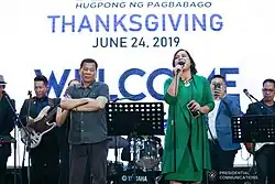 The party was formally launched on February 23, 2018, by Sara Duterte and four governors from the Davao Region.[9] In addition to the party's alignment with the Duterte administration, Sara Duterte said that she formed Hugpong ng Pagbabago "to pursue the ideals of what we all want, a strong region, a secure life for our constituents, good governance and effective leadership of the members of the party."[10] The Commission on Elections (COMELEC) granted the accreditation of Hugpong ng Pagbabago as a regional political party in July 2018.[4] A proposal to turn the party into a national party was shelved by Duterte in January 2019.[11]