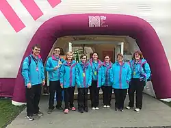 From an initial 120 Pioneer Volunteers recruited in March 2016 through various Wave 1, 2, 3 and 4 recruitment drives, a total of 2,500 individual volunteers were signed up. Volunteers wore a uniform designed and provided by local company Arco, consisting of black trousers or shorts, blue polo shirt, jacket, baseball cap and purple backpack. Arco described the colours as 'scandalous blue', 'ludicrous purple' and 'mischievous pink'.[29] These made all volunteers easily identifiable and approachable by members of the public looking for assistance and advice.