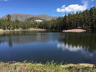 Hulsey Lake is a lake near Escudilla Peak in the Apache National Forest, Arizona. It is located at 8,620 feet (2,630 m) on the Apache-Sitgreaves National Forests. It is an impoundment of Hulsey Creek, a tributary of Nutrioso Creek. Due to snow and ice, the lake is usually inaccessible from November to mid-April.