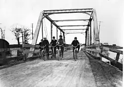In 1802 a ferry service to cross Humber River was established by Richard Wilson.[1] In 1882 ferry service, Humber River Ferry Company Limited was started from the Humber to Toronto by a consortium of hotel owners (Charles Nurse, John Duck and Octavius Hicks).[1] This service ceased operations in 1886, but later ferry operations by other operators continued into the 1890s to Bathurst Street and York Street. The Toronto Harbour Commission reshaped the waterfront, infilling the shoreline by 100 yards from the Humber River east to Wilson Park Avenue. This was followed by the construction of a bridge across the river and the extension of Lakeshore Road (later rechristened as Lake Shore Boulevard) to the area and ending the need for ferry service as vehicles were able to bring travellers to and from Toronto.[1]