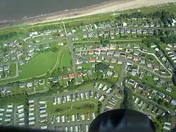 In 1962, approval was given to improve local sewage works provision.[60] Caravans were also replaced by a "chalet type of dwelling", which was a "welcome improvement".[61] In the same year permission was given for a clubhouse, the ‘’Foreshore Inn’’, to be built on the site of a former gun emplacement.[62]