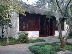 Also called Blooming Brush Hall, which is an allusion to a story by Li Bai about a red flower blooming from the tip of his brush that became a symbol of creativity. It is a three bay hall with a walled courtyard attached to the front. It is named for the magnolia trees in the courtyard and functioned as Wen Zhengming's studio. |