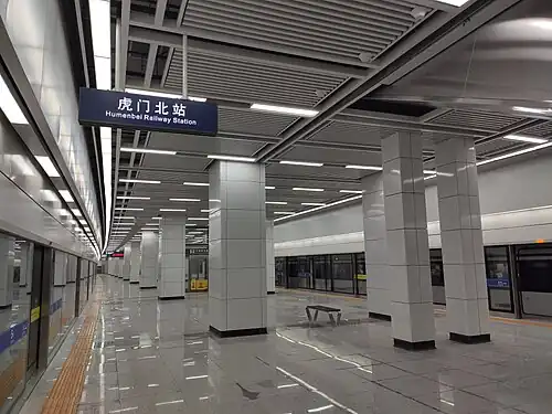 Humen North railway station (simplified Chinese: 虎门北站; traditional Chinese: 虎門北站; pinyin: Hǔmén Běi Zhàn; Jyutping: Fu2mun4 Bak1 Zaam6) is a railway station in Dongguan, Guangdong, China. It is an intermediate stop on the Guangzhou–Shenzhen intercity railway. It opened with the line on 15 December 2019.[1]