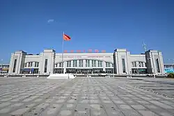 The Jilin–Hunchun intercity railway, a 250-km/h high-speed passenger rail line from Jilin to Hunchun via Tumen (吉图珲铁路客运专线), began construction work in January 2011, and was scheduled and finished at the end of September 2015.[17][18] The railway has been described as "Dongbei's most beautiful railway" (due to the terrain it runs through) and "the fastest way to Vladivostok" (4 hours by train from Shenyang to Hunchun, plus four hours by bus from Hunchun to Vladivostok).[19] Reflecting the border location of the city, the train station has its sign in four languages: Chinese, Korean, Russian, and English.[5]
