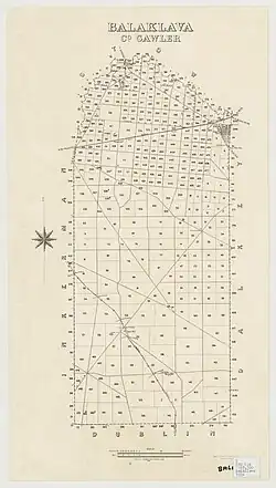 The Hundred of Balaklava is a cadastral unit of hundred located on the northern Adelaide Plains in South Australia immediately south of the Wakefield River.[1] It is one of the eight hundreds of the County of Gawler.[2] It was named in 1856 by Governor Dominick Daly after the Crimean War Battle of Balaklava.[1] The township of Balaklava is at the extreme north east corner of the hundred.