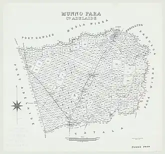The Hundred of Munno Para is a cadastral unit of hundred covering the outer northern suburbs of Adelaide north of the Little Para River and the flanking semi-rural areas in South Australia.[1] It is one of the eleven hundreds of the County of Adelaide.[2] It was named in 1846 by Governor Frederick Robe, Munno Para being a term from a local Kaurna Aboriginal people meaning golden wattle creek.[3] This name refers to either the Gawler River (which starts at the confluence of the South Para River and North Para River) or the Little Para River.