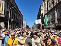 The march started at Városháza park at 14:00. The planned path was: Károly körút, Múzeum körút, Liberty Bridge, then Műegyetem rakpart.[150] However, the far-right Our Homeland Movement (MHM) had received permission from the police to hold an assembly at the same time as Budapest Pride from Heroes' Square to Liberty Bridge,[151] so the Pride march had to be diverted to the Elisabeth Bridge.[152] Karácsony said "It is interesting that the police says neo-Nazis can protest, but freedom-loving people cannot."[153] Speeches were given by Kati Wolf,[154] Karácsony,[155] Judit Hernádi,[156] Ștefănuță,[157] Patrícia Kovács,[158] Judit Pogány,[159] and foreign politicians and mayors.[160] The march was concluded by Carson Coma's concert.[161] The hosts were Kristóf Steiner and Ildikó Kovalcsik (Lilu).[162]