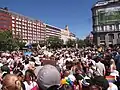 Between 100,000 and 200,000 people participated in the event[163] – last year, 35,000 people attended[164] –, and many were first-timers.[42] Many attendees held banners mocking Orbán.[164] The organizers said participants had arrived from 30 different countries.[165] Many attendees stated that this Pride march was not just for the protection of sexual minorities' rights, but also for the country's democratic future.[166] Around 70 MEPs attended, most of them belonging to the liberal Renew Europe, Socialists & Democrats, the Left, and Greens groups, along with a single EPP member from Ireland, Maria Walsh.[167] Other MEPs participating were Li Andersson[168] and Alice Bah Kuhnke.[169] Swedish activist Greta Thunberg also participated.[170] Lahbib held meetings with local civil society organizations in Hungary but did not attend the march.[167] No one was arrested or fined for attending Budapest Pride.[171][172] Lóránt Horváth attorney stated that the police may not fine attendees, because the police did not notify them of the unlawfulness of the assembly nor that they are to leave.[173] Klára Dobrev turned herself in, and Vice President of the MHM Előd Novák reported Karácsony.[174] Proceedings were started against Lili Pankotai,[175] which were terminated.[176] Due to contradictory communications from the police and the organizers, the police stated that they will not start procedures against Pride attendees.[177] The Ministry of Interior stated that facial recognition systems will not be used to punish attendees.[178]