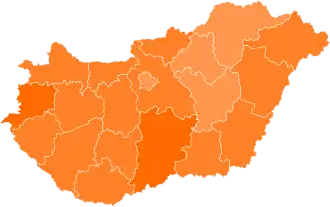 Fidesz:      40–50%      50–60%      60–70%