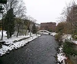 Hunnselva is affected by runoff from the urban infrastructure and sewage in Gjøvik and at one time the river was considered "one of Northern Europe's most polluted rivers."[11][12] This greatly affected the level of pollution in Lake Mjøsa and by the end of the 19th century, the wildlife had been decimated.[11] Thanks to conservation efforts, however, it has since been restored.[11] The river is now home to trout, perch, pike, whitefish, rudd, and minnows.[4] There is a fly fishing zone along the river where one can do catch and release fishing during the legal fishing season.[6][3]