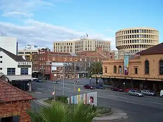 | Hunter Street, Newcastle from Civic Railway Station. To the right is the Newcastle Civic Theatre | |