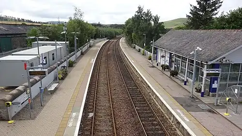 Huntly railway station is a railway station serving the town of Huntly in Scotland. The station is managed by ScotRail and is on the Aberdeen to Inverness Line, between Insch and Keith, 40 miles 67 chains (65.7 km) from Aberdeen.[4]