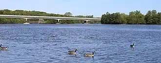 Huron Parkway bridge over Geddes Pond viewed from Gallup Park, Ann Arbor