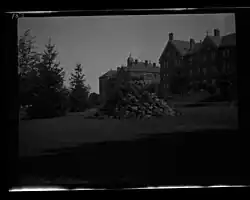When Toronto Star columnist Pierre Berton visited the Ontario Hospital School in 1960, he reported dilapidation and gross overcrowding—2808 residents occupying spaces that could hardly contain a thousand fewer, with sleeping quarters installed in repurposed classrooms, playrooms and therapy rooms.[1] Washroom facilities were also insufficient—on one floor, 144 patients shared 8 toilets, 3 showers and 1 bathtub—and Berton observed that "[p]risoners in reformatories have better facilities."[1] 900 of the higher-functioning patients were housed in the oldest and least fire-resistant buildings, because they were judged most able to flee in case of evacuation.[1] Despite these glaring flaws, Berton also noted that "[i]n many respects it [was] an up-to-date institution with a dedicated staff fighting an uphill battle against despairing conditions."[1]