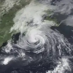 Offshore, several ships came in contact with Bertha, many reported sustained winds of 35–58 mph (56–93 km/h) and a Canadian ship reported a barometric pressure of 985 mbar (29.1 inHg).[2] The only reported shipwreck caused by Bertha was when the Corazon, a Greek freighter capsized and sank during the storm.[4] The ship, which was off the coast of Cape Cod at the time of its sinking, was experiencing strong winds up to 78 mph (126 km/h) and 30 feet (9.1 m) waves. The rough seas caused the ship's keel to break, causing the crewmen to send a distress signal and evacuate the sinking vessel. During the evacuation, one crewman drowned when trying to board a lifeboat, his body was later found by a Soviet merchant ship.[7] Another merchant ship, the Vyapel, spotted twelve of the 27 sailors in their liferaft and the crew of the Vyapel tried to rescue the sailors but to no avail as the rough seas caused the liferaft to drift near the ships propeller and rudder area. The turbulence caused by the ships propeller knocked seven sailors into the water, five of them drowned and a search for their bodies continued until the following day.[7] The remaining 21 sailors were later rescued by crews of other freighters and merchant ships.[4] An investigation by the United States Coast Guard revealed that the Corazon's lifeboats were in too poor of a condition to use in case of an emergency.[7]
