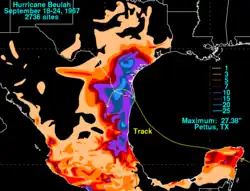 ![]() Beulah in the Gulf of Mexico as a Category 5 hurricane on September 19 | |