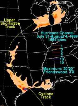 - ^ David M. Roth (May 14, 2007). Hurricane Chantal - July 31–August 4, 1989 (Report). Hydrometeorological Prediction Center's Rainfall Archive. College Park, Maryland: Hydrometeorological Prediction Center. Retrieved January 9, 2013.