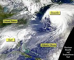 Satellite imagery of Hurricanes Danielle and Earl on September 2, 1998