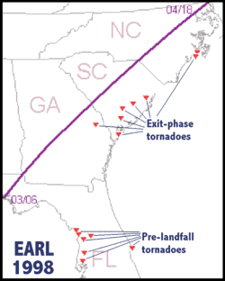 - ^ a b c d e David M. Roth (2009). "Hurricane Earl - September 1–5, 1998". Hydrometeorological Prediction Center. Retrieved June 7, 2009.