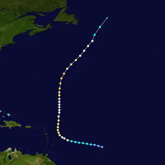 - ^ National Hurricane Center (2009). "Atlantic Best Tracks, 1851 to 2008". National Oceanic and Atmospheric Administration. Retrieved June 12, 2009.