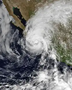 ![]() Hurricane Ismael off the coast of Baja California nearing landfall | |