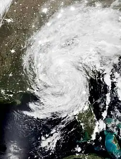 ![]() Hurricane Nicole shortly before landfall in eastern Florida on November 10 | |