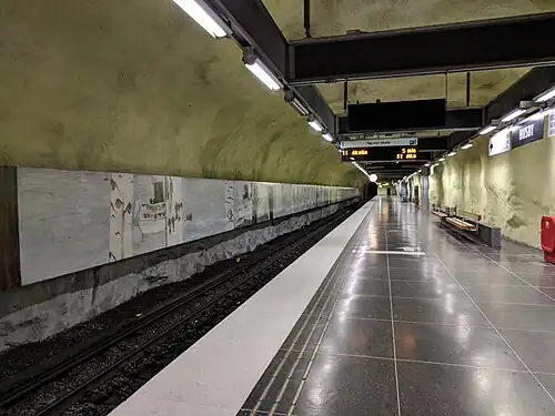 Husby is a station on the blue line of the Stockholm metro, located in the district of Husby, northern Stockholm. The station was inaugurated on 5 June 1977 as part of the extension from Hallonbergen to Akalla.[2] The distance to Kungsträdgården is 15 km (9.3 mi).
