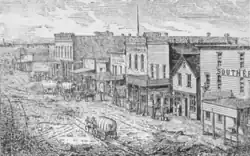 The city of Hutchinson was founded in 1871 when frontiersman Clinton "C.C." Hutchinson contracted with the Santa Fe Railway to make a town at the railroad's crossing over the Arkansas River. The town actually sprang up about one-half mile north, on the banks of Cow Creek, where a few houses already existed. Hutchinson later founded the Reno County Bank in 1873, and by 1878 had erected the state's first water mill at Hutchinson.[7] The community earned the nickname "Temperance City" due to the prohibition of alcohol set by its founder who placed a deed restriction on every lot prohibiting the sale or gifting of any alcoholic beverage which, if violated, would result in forfeit of the lot, improvements and payments associated with its sale and purchase.[8] Hutchinson was incorporated as a third class city in August 1872.[9]