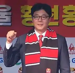 On 21 June 2016, Hwang was appointed as manager of FC Seoul.[25] He successfully finished the rest of the 2016 season by bringing the K League 1 title. However, his discernment in the transfer market was not good and newcomers chosen by him showed poor performances. He was also in severe conflict with veteran players Dejan Damjanović, Osmar and Park Chu-young, failing to control them. Due to his poor results in subsequent seasons, he finally resigned on 30 April 2018.[26]