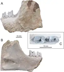 - ^ Leidy J. (1869.) "On the extinct Mammalia of Dakota and Nebraska: including an account of some allied forms from other localities, together with a synopsis of the mammalian remains of North America." Journal of the Academy of Natural Sciences Philadelphia 7: 1–472.