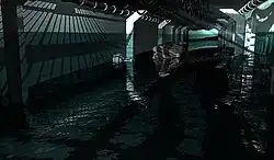 The HydroEngine is a video game engine created by Dark Energy Digital for Hydrophobia. Developed over three years, the engine has a unique capability to model flowing water and other liquids with a realism unprecedented in video games, according to the developers.[15] It is entirely dynamic, which means the effect is not repeated and thus allowing different effects each time. InfiniteWorlds is Dark Energy's development platform, which interfaces directly with the HydroEngine. According to the developers, it is "an underlying architecture, which can interface with bespoke editors tailored to individual game projects."[16] InfiniteWorlds was in development for five years.