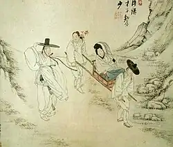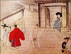 Hyewon pungsokdo is an album of the genre paintings (pungsokhwa or pungsokdo) drawn by the Korean painter Shin Yunbok during the late Joseon dynasty. It was named after Shin's art name, Hyewon, and comprises 30 paintings in total.
