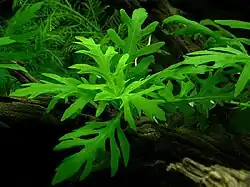 Hygrophila difformis shows heterophyly which is the occurrence of different leaf morphology in the same plant.