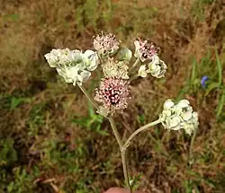 Hymenopappus artemisiifolius is a biennial herb up to 100 cm (39 in) tall. It produces 20-60 flower heads per stem, each head with 40–60 white, yellow, purple, or red disc flowers but no ray flowers.[6] Its flowers attract butterflies.[5]