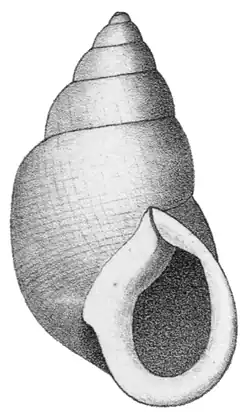 | Drawing of the apertural view of a shell of Hyperaulax ridleyi. | |