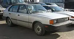 Trim levels were 'L' (standard), 'GL/CX', and 'GLS/CXL'. The 'CX/CXL' designations were for 1987 model years only. The L featured vinyl seats, a fold-down rear bench seat, and usually a four-speed manual transmission mated to a 1.4-litre (85 cu in) inline-four engine. The GL/CX included vinyl-cloth seats, a standard clock (which was mounted in the instrument cluster for 1984–1986 models, and for 1987, a digital clock was added in the centre of the upper dash) rear wiper, passenger-side mirror, tinted glass, lockable fuel door, standard door guards, 50/50 fold-down seats, upgraded interior trim, and (from 1985) an available 1.6-litre (98 cu in) engine. The GLS/CXL included the above with the option of a tachometer, passenger-side vanity mirror, full cloth seats, and (from 1985) a standard 1.6 L engine.[31]
